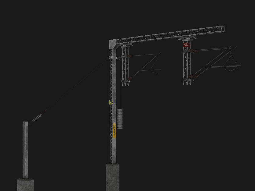 Overhead equipment models for electrified routes, highly detailed.